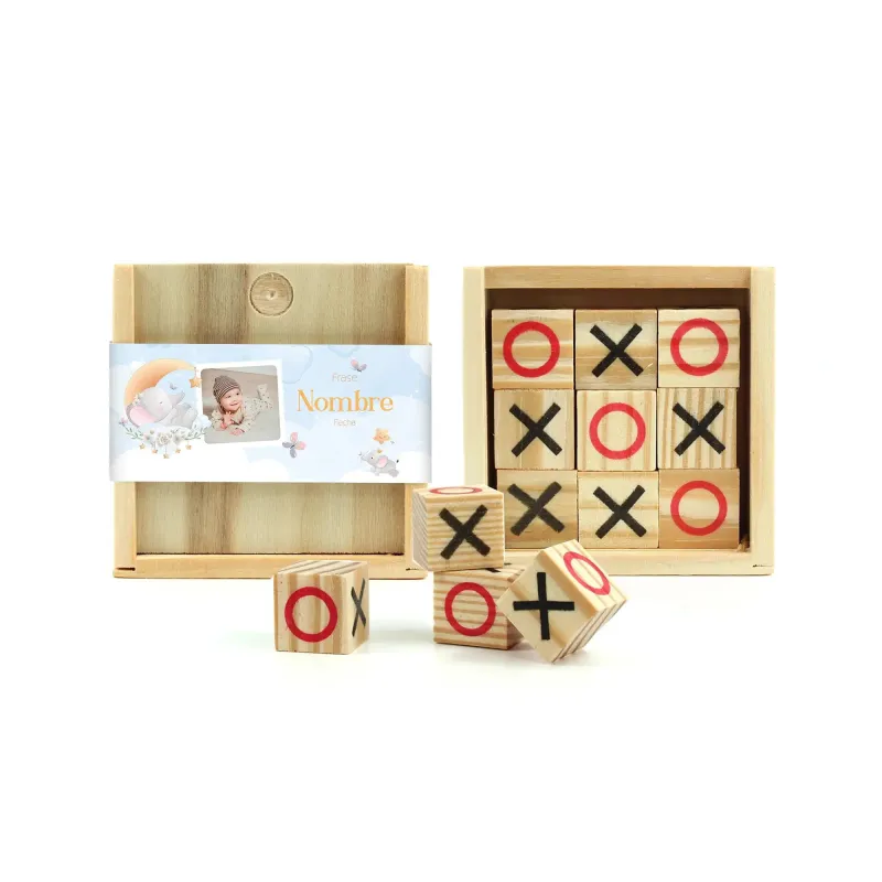 Divertido y original juego de 3 en raya fabricado en madera natural, el regalo ideal para entretener a todos tus invitados del bautizo.