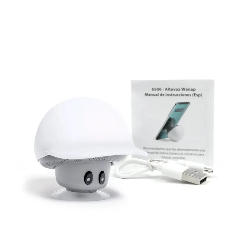 Este original altavoz en forma de seta destaca por su diseño compacto y versátil. Fabricado con un suave acabado de tacto goma, ofrece una sensación agradable al tacto y un diseño moderno que enamora a primera vista. Gracias a su ventosa de fijación, se puede adherir fácilmente a superficies lisas, convirtiéndose en un práctico soporte para el móvil. Así, permite disfrutar de contenido multimedia sin necesidad de sujetar el dispositivo, una característica que lo hace aún más funcional y atractivo.