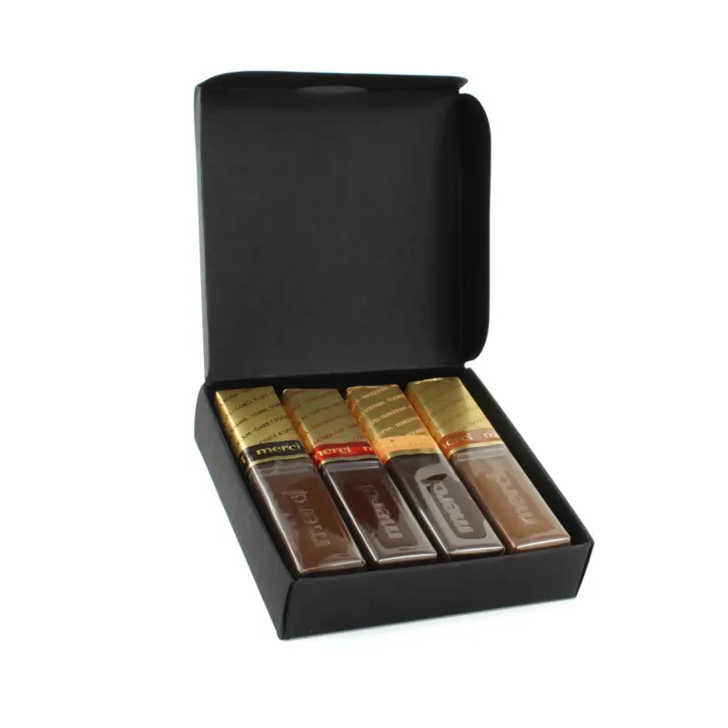 Otra ventaja es la versatilidad. Estos bombones se adaptan a todo tipo de celebraciones, ya sea una cena íntima en familia o un gran evento corporativo. Gracias a su elegante presentación y al sabor inconfundible de los bombones Merci, el éxito está asegurado. Además, su tamaño compacto y práctico facilita tanto el transporte como la entrega, lo que resulta especialmente útil en eventos con muchos invitados.