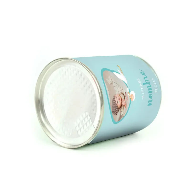 Un delicioso regalo navideño para la celebración de bautizo que junto con la latita plateada personalizada la hace el regalo ideal para tus invitados de del nacimiento. Panettone clásico con pepitas de chocolate.