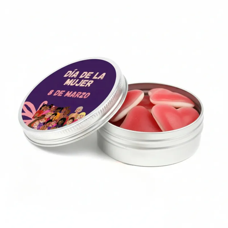 Como expertos, siempre recomendamos optar por productos que generen un vínculo emocional. Al regalar estas chuches, no solo está entregando un dulce, sino un símbolo de aprecio y reconocimiento. La combinación de la suavidad del corazón de goma con la solidez del metal representa perfectamente la dualidad de la lucha feminista: sensibilidad y fortaleza. Si están buscando regalos feministas para mujeres que sean originales, útiles y de una calidad contrastada por años de experiencia en el sector, estas latitas personalizadas son, sin duda, la elección ganadora para su próximo evento.