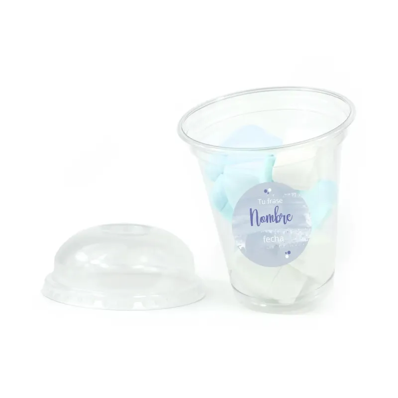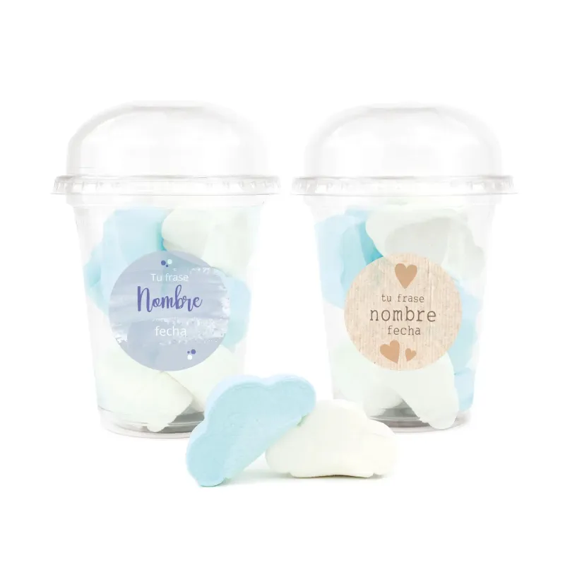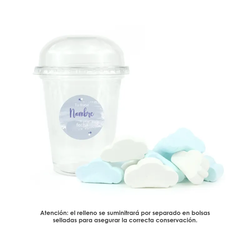 La Copa con Nubes de colores, personalizada con una pegatina a todo color, es un regalo muy gracioso, sabroso y con mucho color con la que podrás sorprender a los invitados de la Comunión de tu hijo/a para endulzar la fiesta. Ideal si buscas un detalle "grande" y económico.