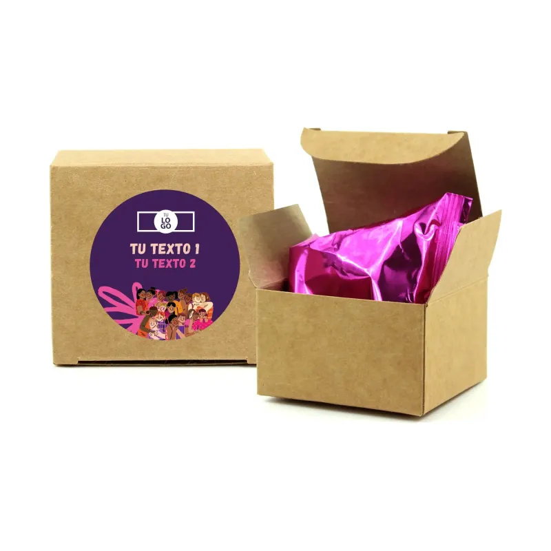 Estas galletas son el detalle ideal para empresas, asociaciones y organizaciones que desean conmemorar el Día de la Mujer con un gesto simbólico. Su presentación en una elegante cajita de cartón kraft, personalizable con pegatinas diseñadas específicamente para esta ocasión, las convierte en un regalo 8M memorable y especial.