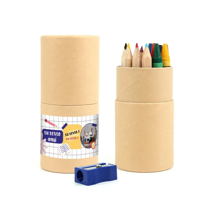 Un estuche de cartón con lápices de colores y ceras para que los niños y niñas de tu clase se distraigan y se lo pasen genial! Diferentes y originales detalles para los niños.