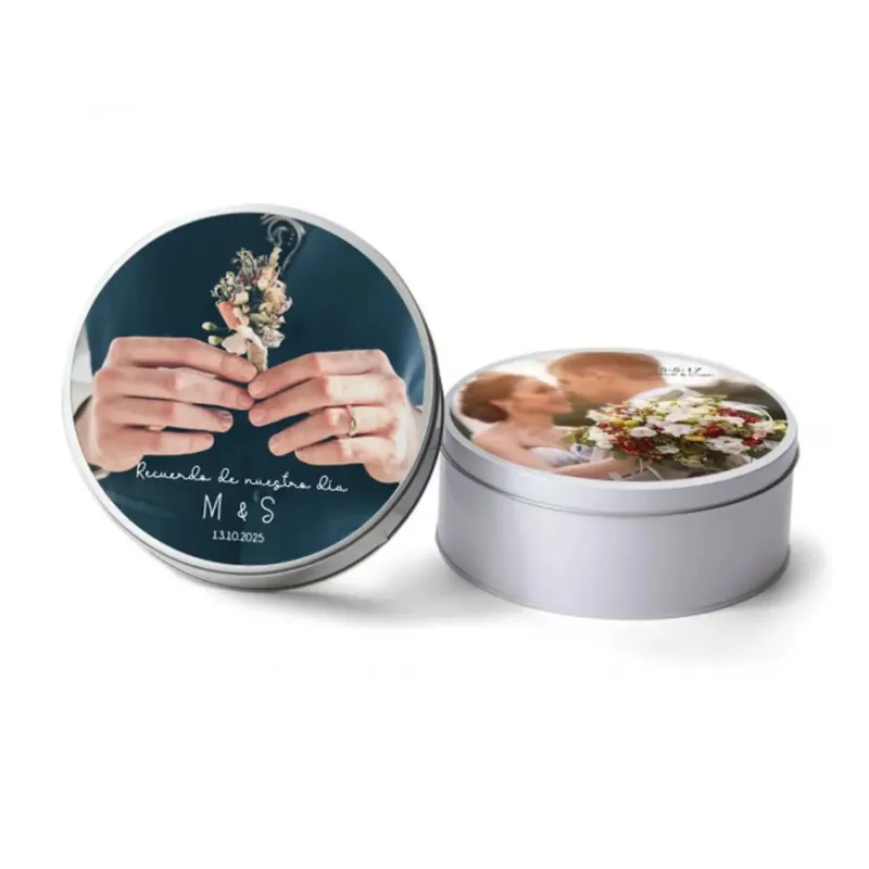Deliciosas mini bolas tipo caviar crujiente de maíz/cereal recubiertas de chocolate con leche disponibles en varios colores, presentadas en una bonita lata metálica con etiqueta personalizada a todo color, con dos campos de texto para que escribas lo que quieras. Original detalle de Navidad.