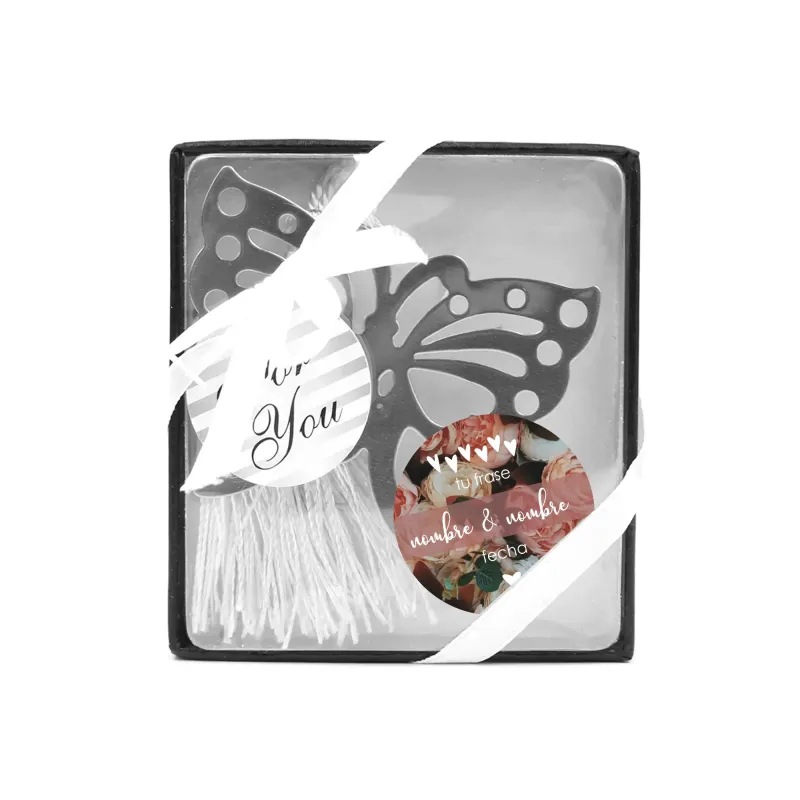 Si buscas un recuerdo especial para un día tan importante, el Marcapáginas Mariposa con pegatina Personalizada para Boda es la opción perfecta. No solo es un obsequio bonito y original, sino también un detalle práctico que los invitados podrán utilizar y conservar con cariño.
