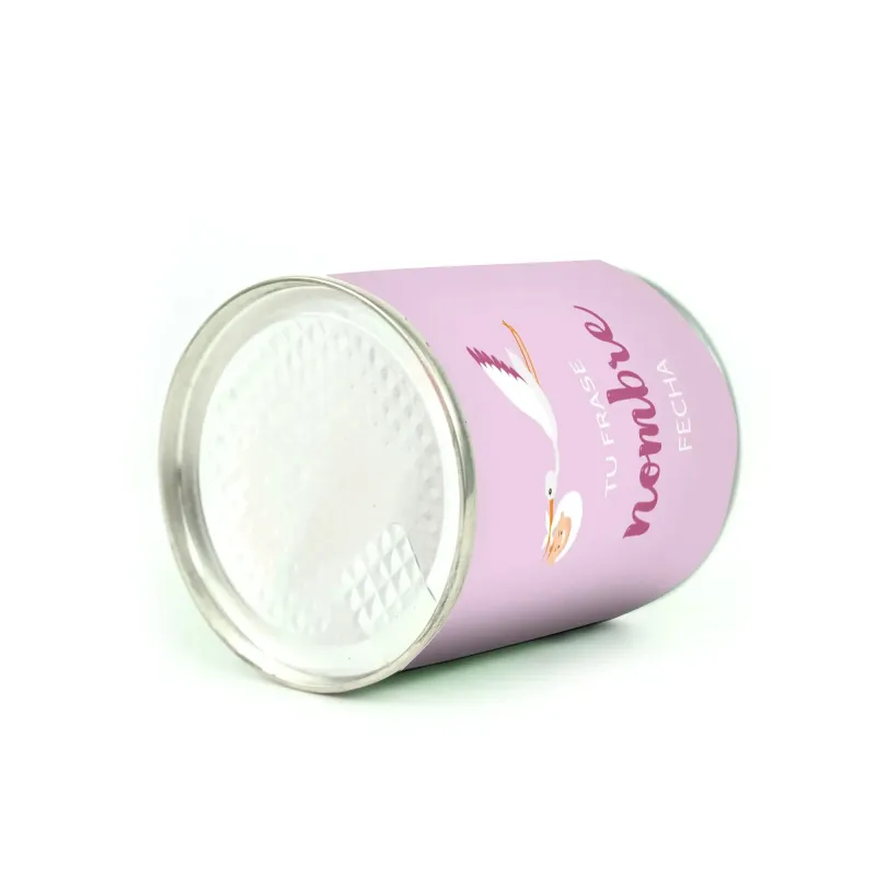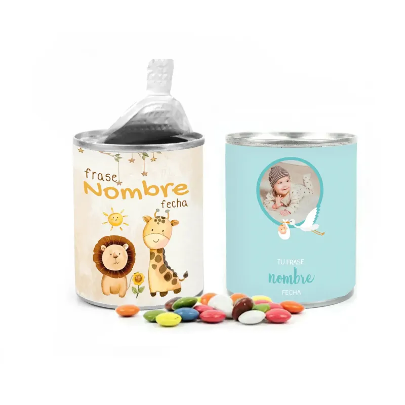 Lata grageas de chocolate personalizada con etiqueta para regalos de Baby Shower