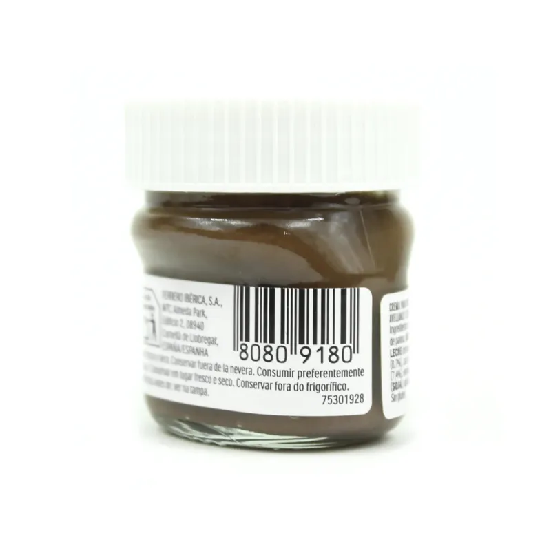 Si buscas un detalle para los invitados de Comunión que combine originalidad, personalización y buen gusto, esta mini Nutella es la opción ideal. Gracias a su pegatina personalizada en la tapa con un diseño exclusivo para la ocasión, podrás agregar un toque único y especial a cada tarrito. Además, su práctico tamaño hace que sea un regalo fácil de llevar y perfecto para cualquier presentación.