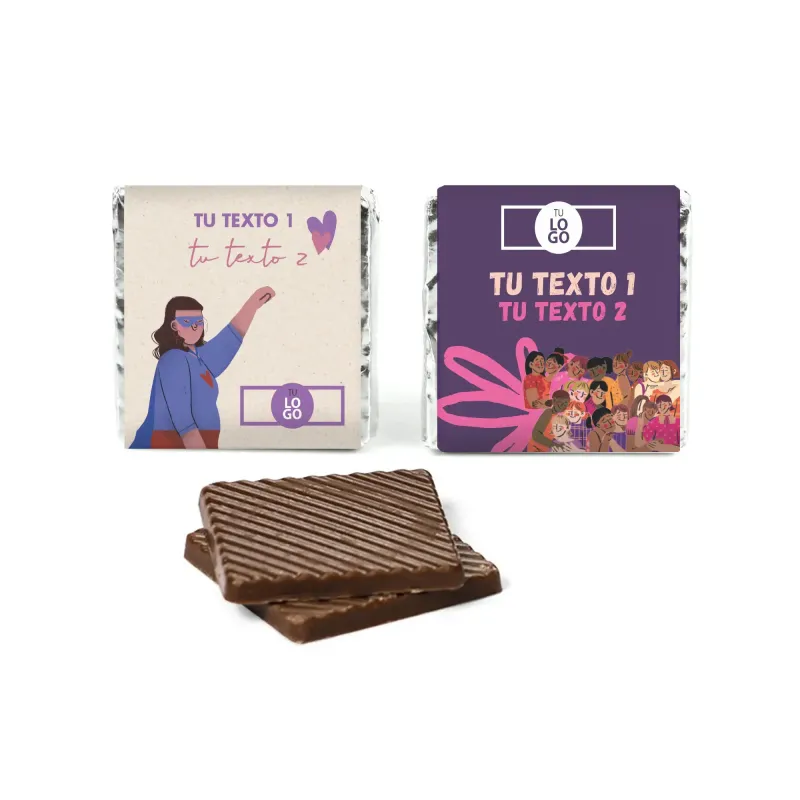 El Día Internacional de la Mujer es una fecha para reconocer y honrar la lucha por la igualdad y los derechos de las mujeres. Para hacer de este día una ocasión más especial, nada mejor que un obsequio simbólico y delicioso. Nuestro Pack de 50 Chocolatinas Napolitanas Personalizadas es el detalle perfecto para compartir con compañeras de trabajo, clientas, familiares o amigas.
