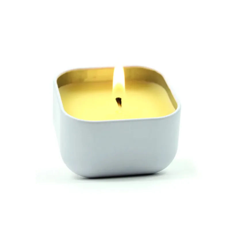 Nuestra vela está presentada en una preciosa latita metálica cuadrada con esquinas redondeadas y tapa a presión, que podrás elegir en color azul, blanco o rosa. Además, su diseño elegante y minimalista se adapta a cualquier temática, permitiendo personalizar la tapa con un diseño exclusivo que refleje el estilo de la celebración.