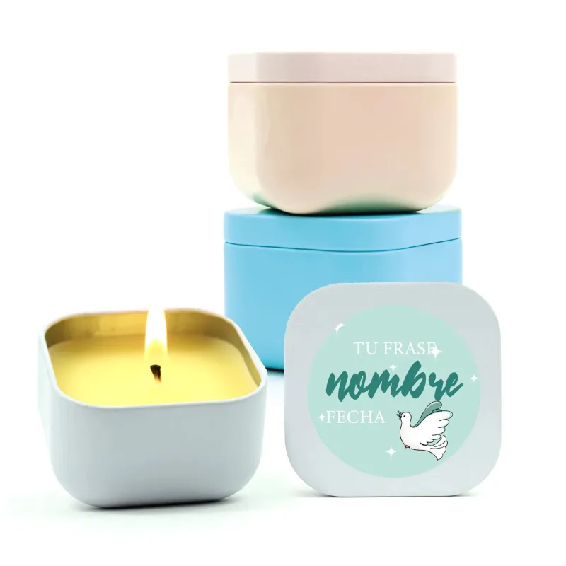 Si estás organizando un Bautizo y deseas un recuerdo bonito, original y personalizado, no dudes en elegir esta vela aromática en latita cuadrada. Explora más opciones de detalles Bautizo en nuestro catálogo y encuentra el obsequio perfecto para esta ocasión tan especial.